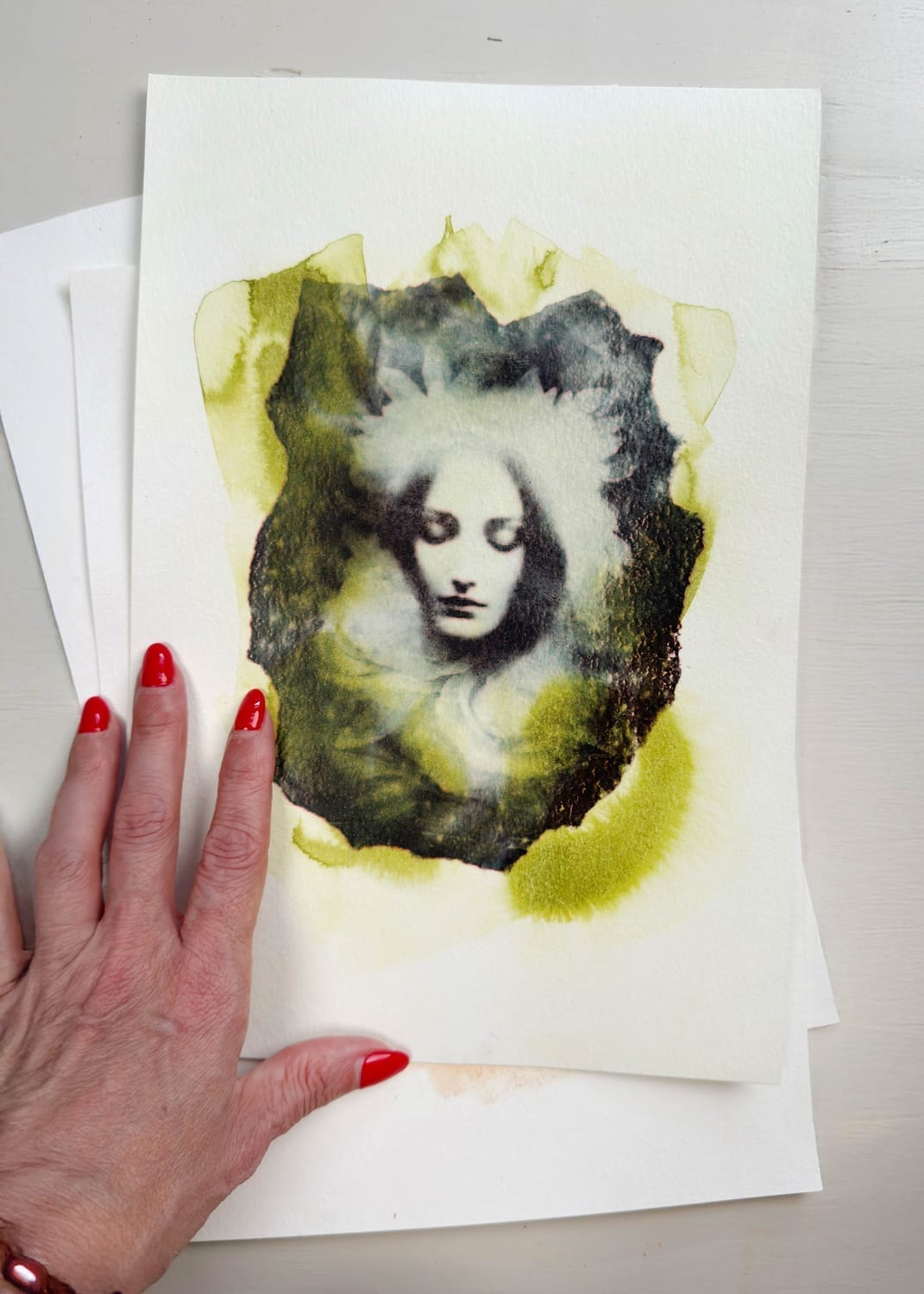 Fruit de mes expérimentations, cette technique ludique vous permet de créer des transferts subtils et uniques en détournant l'usage des papiers "décalcomanie".